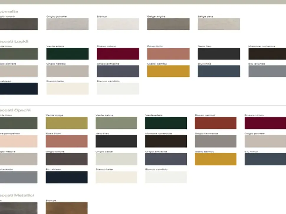 Contenitori e madie possono essere a pavimento o sulle tipiche gambe in metallo verniciato