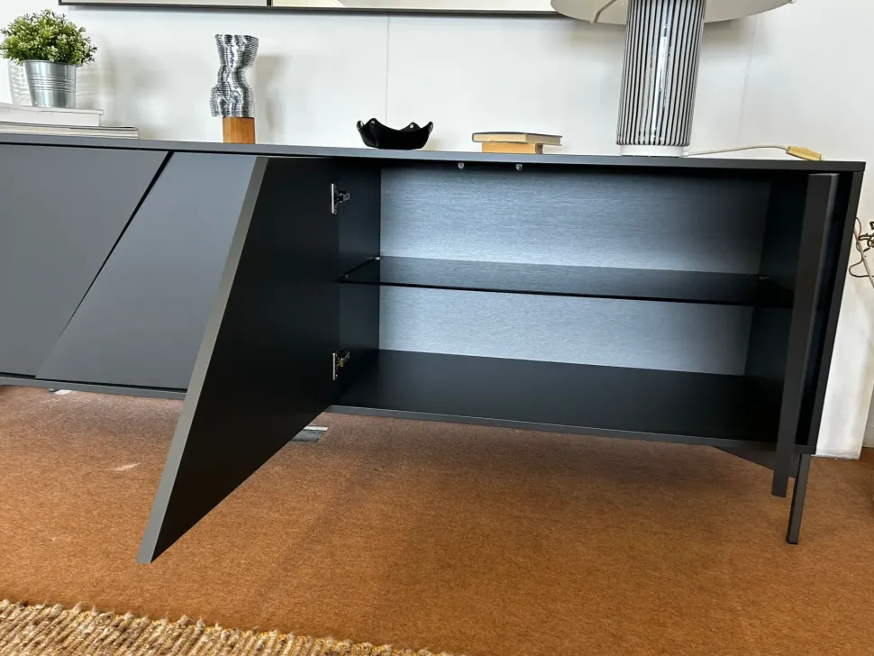 Madia Kendo di AlfDaFrè da 210x50x78h in laccato opaco Modica (antracite) con 4 ante battenti. Internamente dotata di ripiano in vetro.