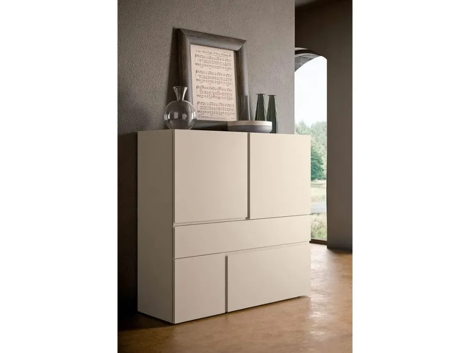 La madia modello Quadra qui disponibile saprà impreziosire il tuo soggiorno sottolineando le doti estetiche del locale: questo mobile in laccato opaco ti consentirà di avere sempre a disposizione un piano d’appoggio multifunzionale, esaltando al contempo lo stile moderno del soggiorno.