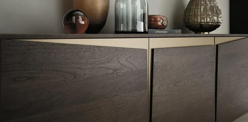 La madia in foto è nella finitura Noce Dark e laccato bronzo cm 180 x 75,4 prof. 45