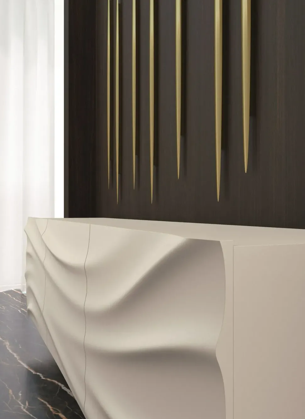 La madia Fluida nella fotografia è appartenente alla nostra collezione di mobili e oggetti accessori senza maniglia.