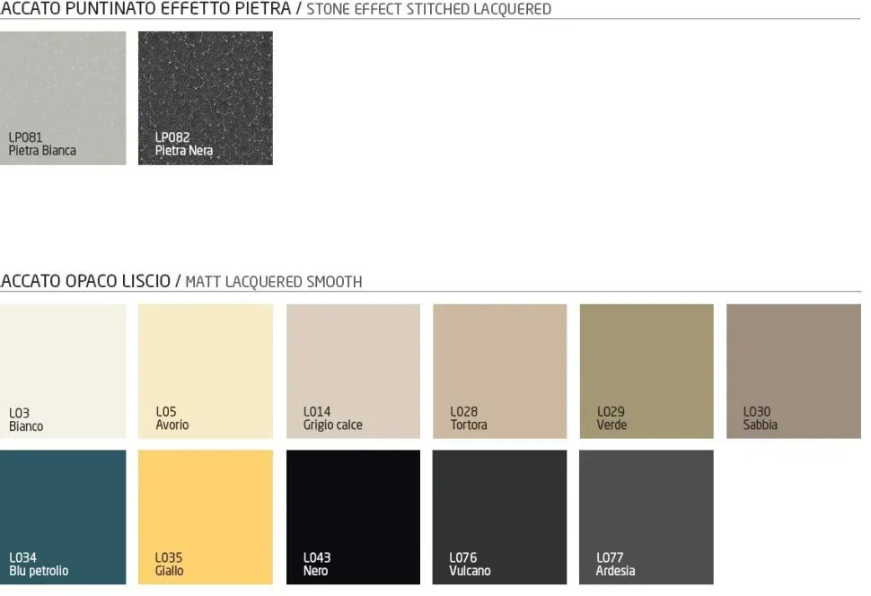 Ogni finitura possiede alcune peculiari caratteristiche: se desideri una soluzione in laccato opaco, il modello nell’immagine fa per te.