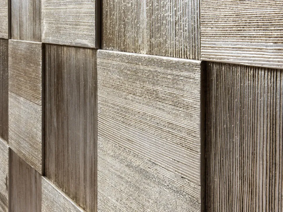 Penny outlet è una credenza moderna di design, caratterizzata da una raffinata lavorazione in foglia argento che le conferisce un aspetto elegante e distintivo, capace di soddisfare anche i gusti più ricercati. Ideale per ambienti sofisticati , rappresenta la scelta perfetta per chi desidera arredare con stile e originalità. Le tre ante battenti presentano un composizione frontale a riquadri con finitura in larice scavato. L’alternanza delle scanalature verticali ed orizzontali crea un suggestivo contrasto di texture che, insieme al gioco di luci e riflessi, dona alla credenza un’eleganza armoniosa e un carattere unico.