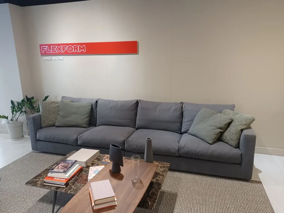 Divano flexform modello Magnum, con struttura in legno con imbottitura in poliuretano rivestito in tessuto protettivo accoppiato , cuscini seduta in piuma con inserto in materiale indeformabile, cuscini di schienale in piuma e fibra di poliestere rivestimento in tessuto sfoderabile .