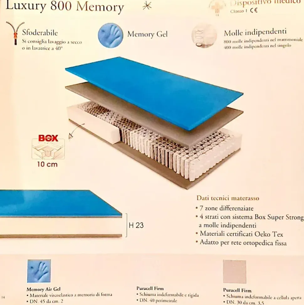 MATERASSO 800 MOLLE MEMORY GEL CM 160 X 190-200