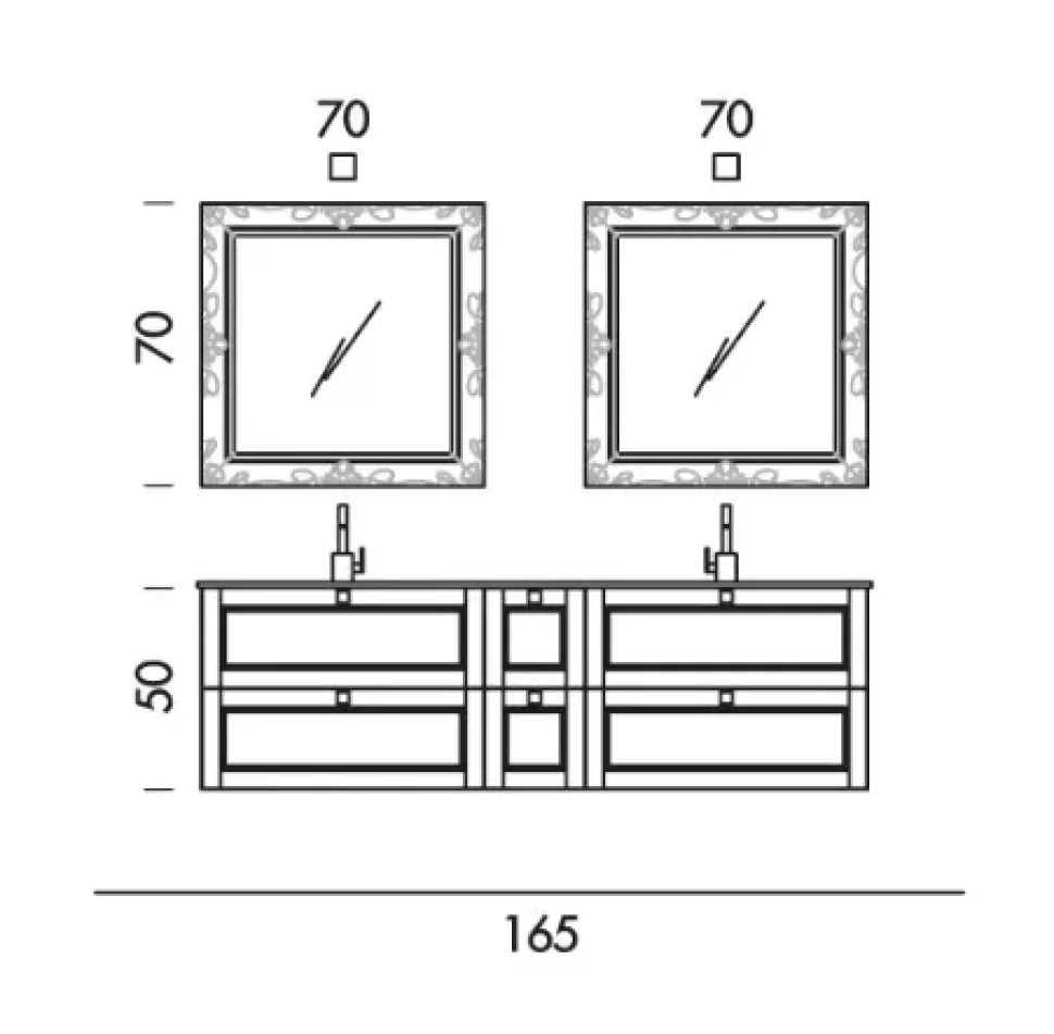 dimensioni cm L.165 XH.51