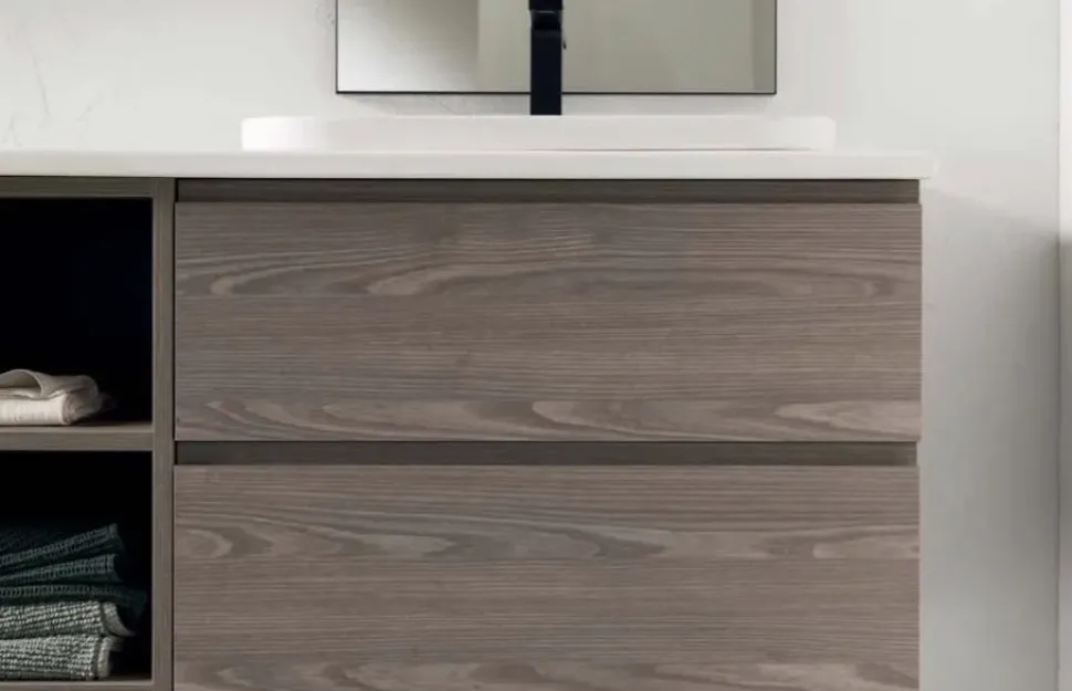 - Con il fine di poter far fronte a diverse problematiche abitative, il brand ha messo a punto una serie di arredi di varie tipologie per il bagno; il modello presente in foto è un mobile sospeso, plurifunzionale e ampio.