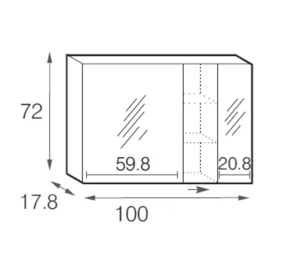 Bellissimo specchio contenitore MASTELLA mod.Titus 100 di misure L.100 x p.17,8 x h.72cm. con due ante e un vano a giorno.