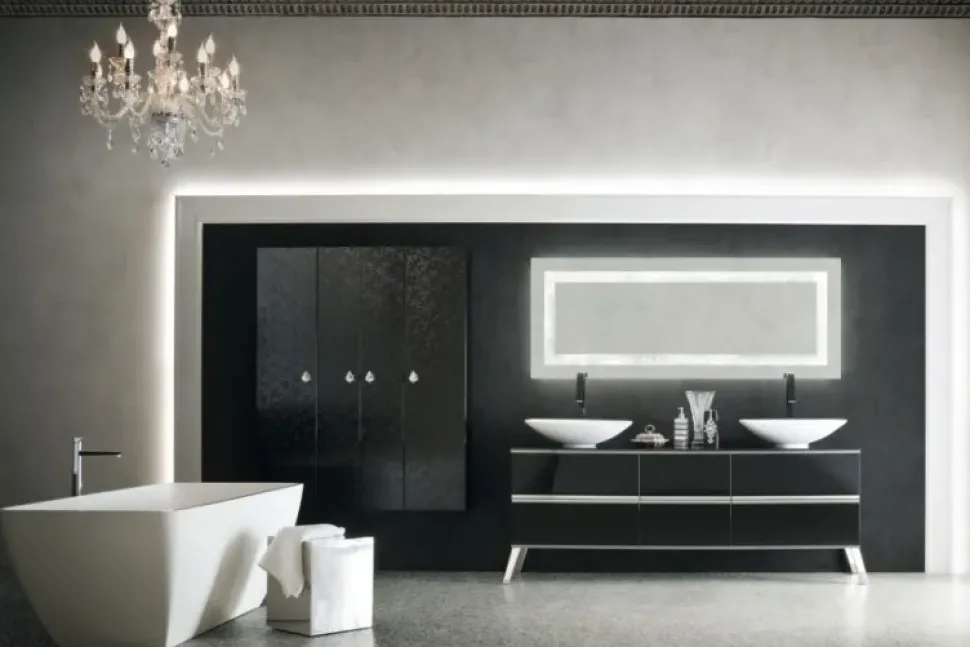 - Durante la scelta di un arredo per il bagno è imprescindibile tenere in considerazione le misure dell’ambiente da completare, ma anche lo stile che meglio trasmette il tuo stile personale. Le finiture e le cromie saranno coordinati con quelli di pareti e pavimentazioni. Questa soluzione è realizzata in laccato lucido.