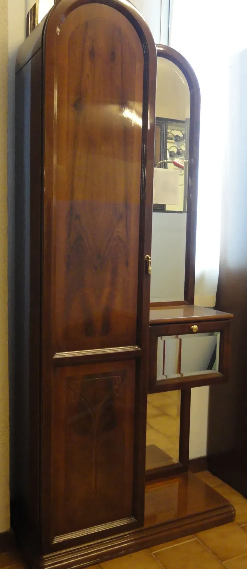 Il mobile ingresso in arte povera è completo di mobile armadio , specchio e cassetto sospeso .