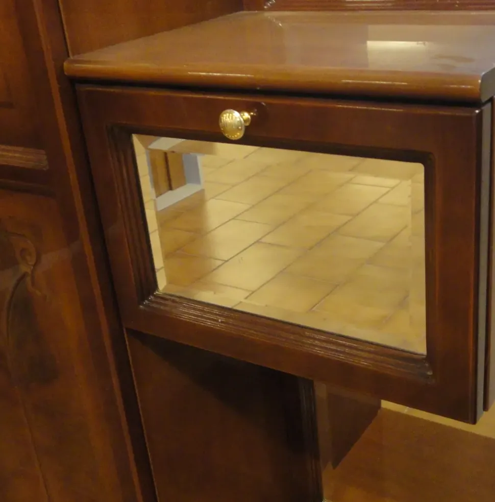 Il pensile, con anta a specchio, la sua apertura è a ribalta (verso il basso.)