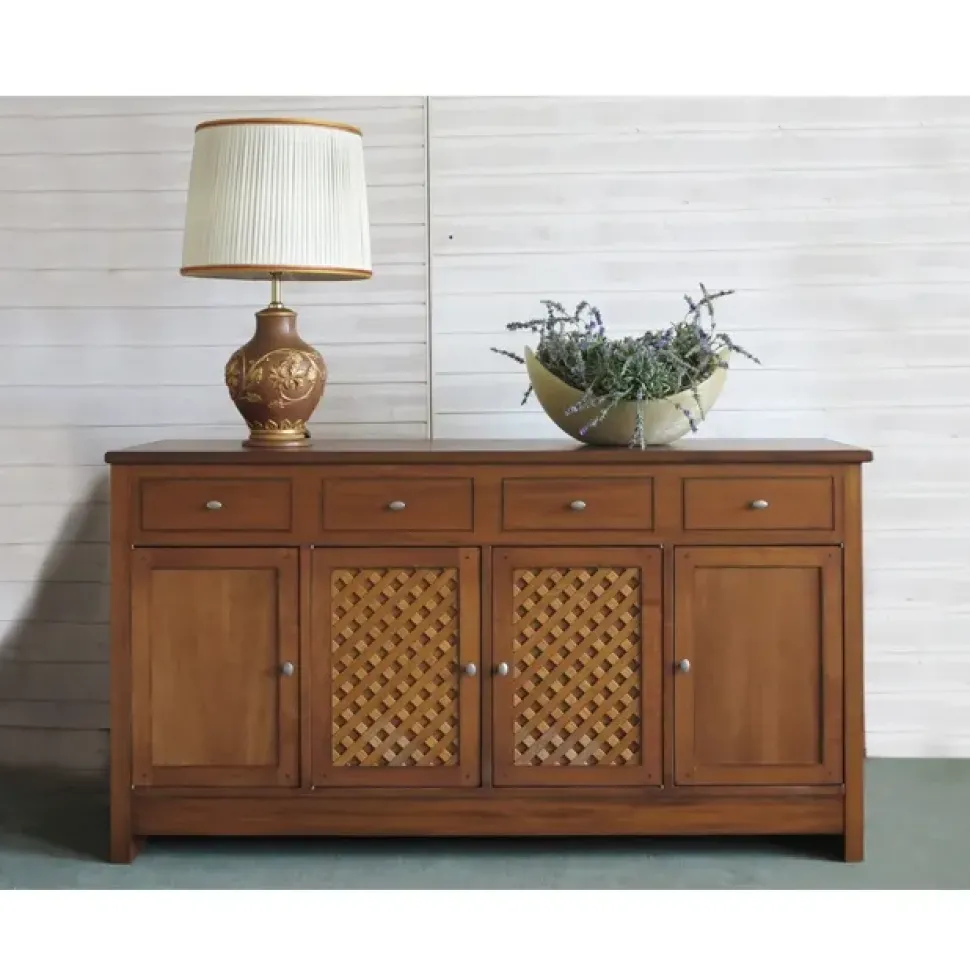 Credenza dalla linea sobria classica dotata di quattro antine, due cassetti e due finti-cassetti.