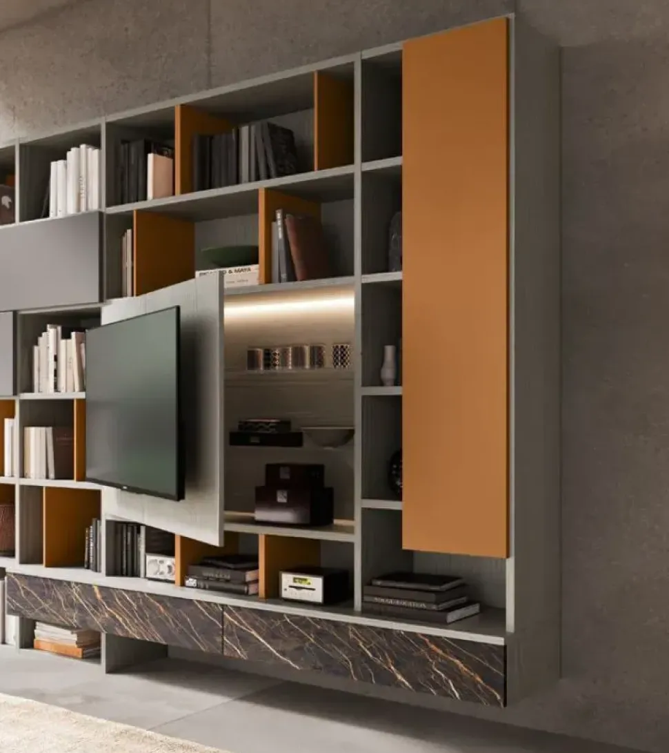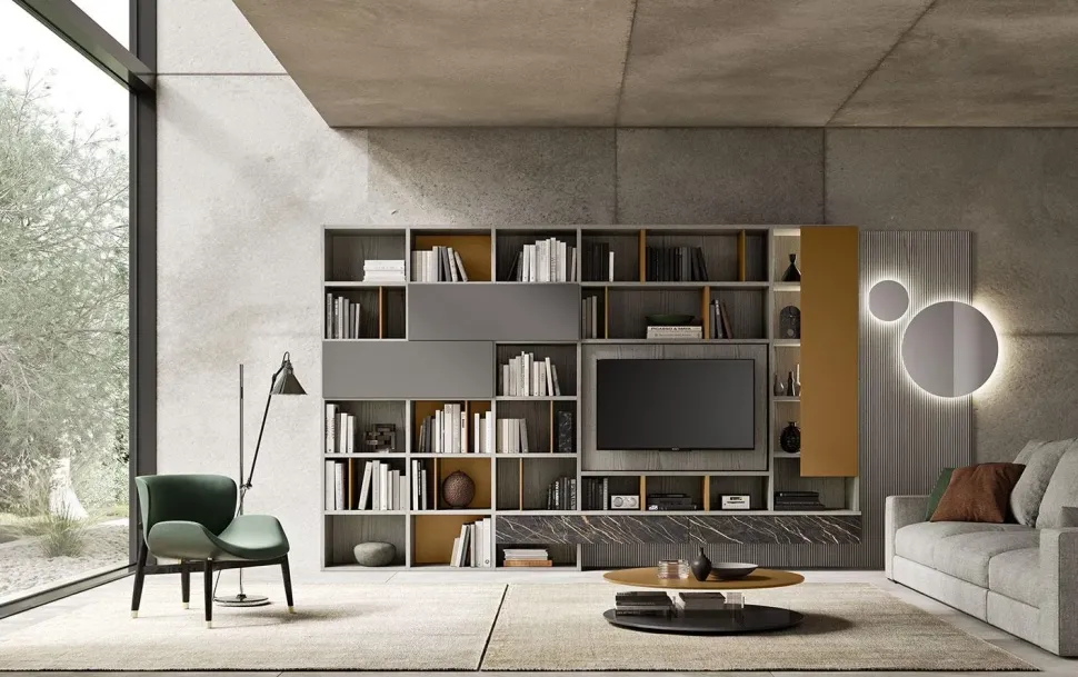 Dai vita al soggiorno design che hai sempre sognato: le pareti attrezzate di questa linea Mobilgam ti consentiranno di valorizzare la zona giorno seguendo una certa coerenza di stile.