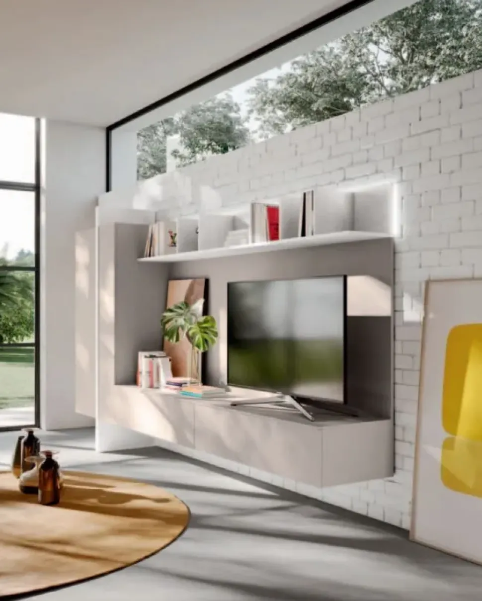 - Per completare un living design opta per una parete attrezzata che mantenga una certa coerenza stilistica, come questo modello Day 09 a prezzo ribassato.