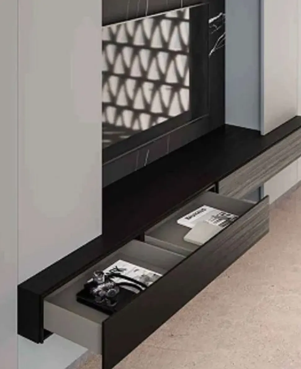 Questa composizione per la zona giorno si rivelerà il miglior acquisto se vuoi una parete attrezzata senza maniglia dalle linee decise.