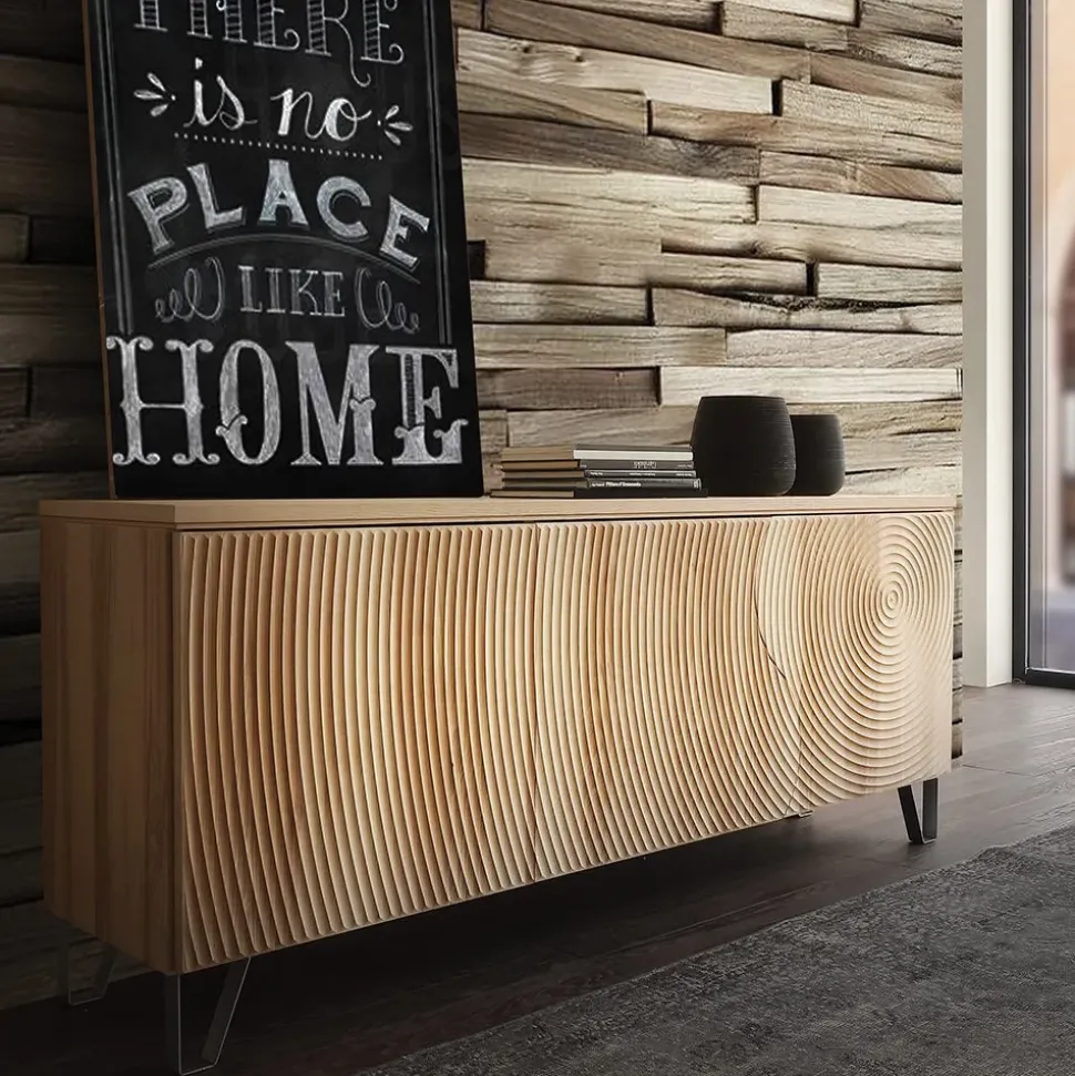 Le madie e i mobili per il living, come il modello Madia optical presente in foto, sono fondamentali sia dal punto di vista dell’estetica che per quanto riguarda la funzionalità: potrai riporci riviste, oggetti d’uso quotidiano o propriamente decorativo. La madia in legno nella fotografia unisce le doti di funzionalità e stile dell’ambiente dando vita a un progetto d’arredo moderno.