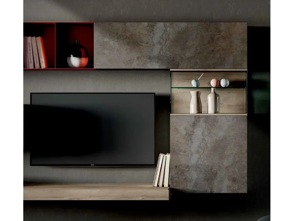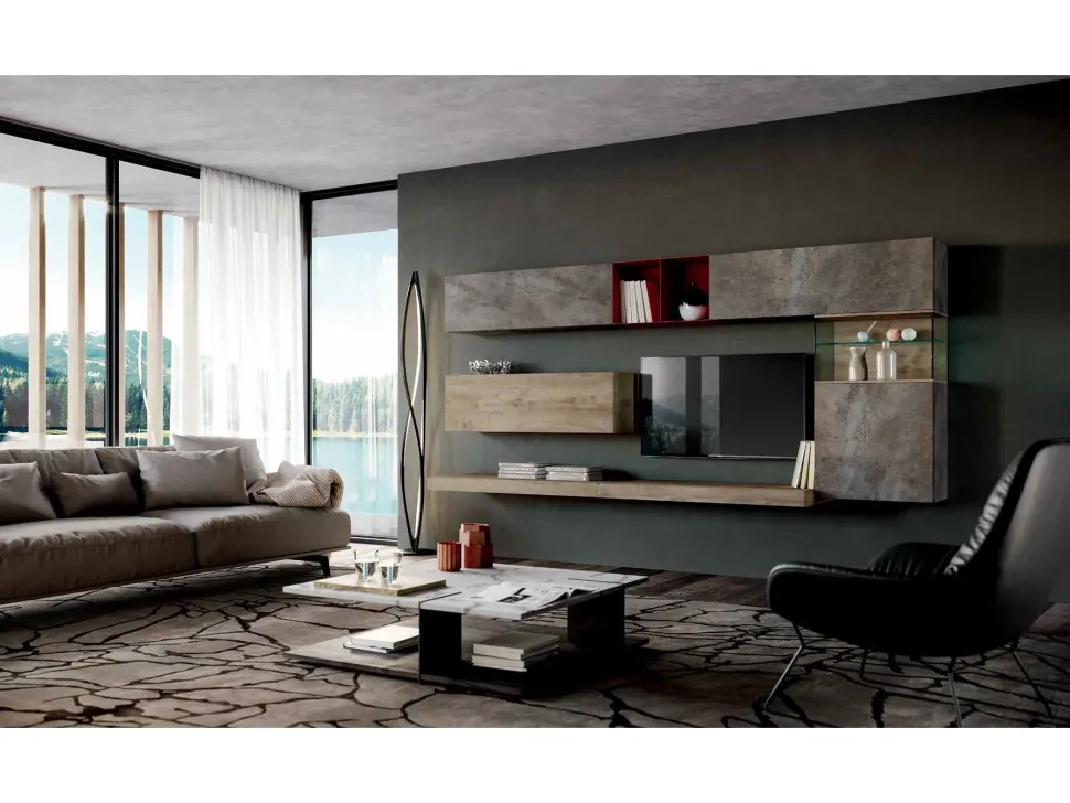 - Se vuoi valorizzare il living con un mobile sospeso, scopri questa parete attrezzata in Offerta Outlet: saprà rendere lo spazio dinamico e operativo senza essere d’ingombro.