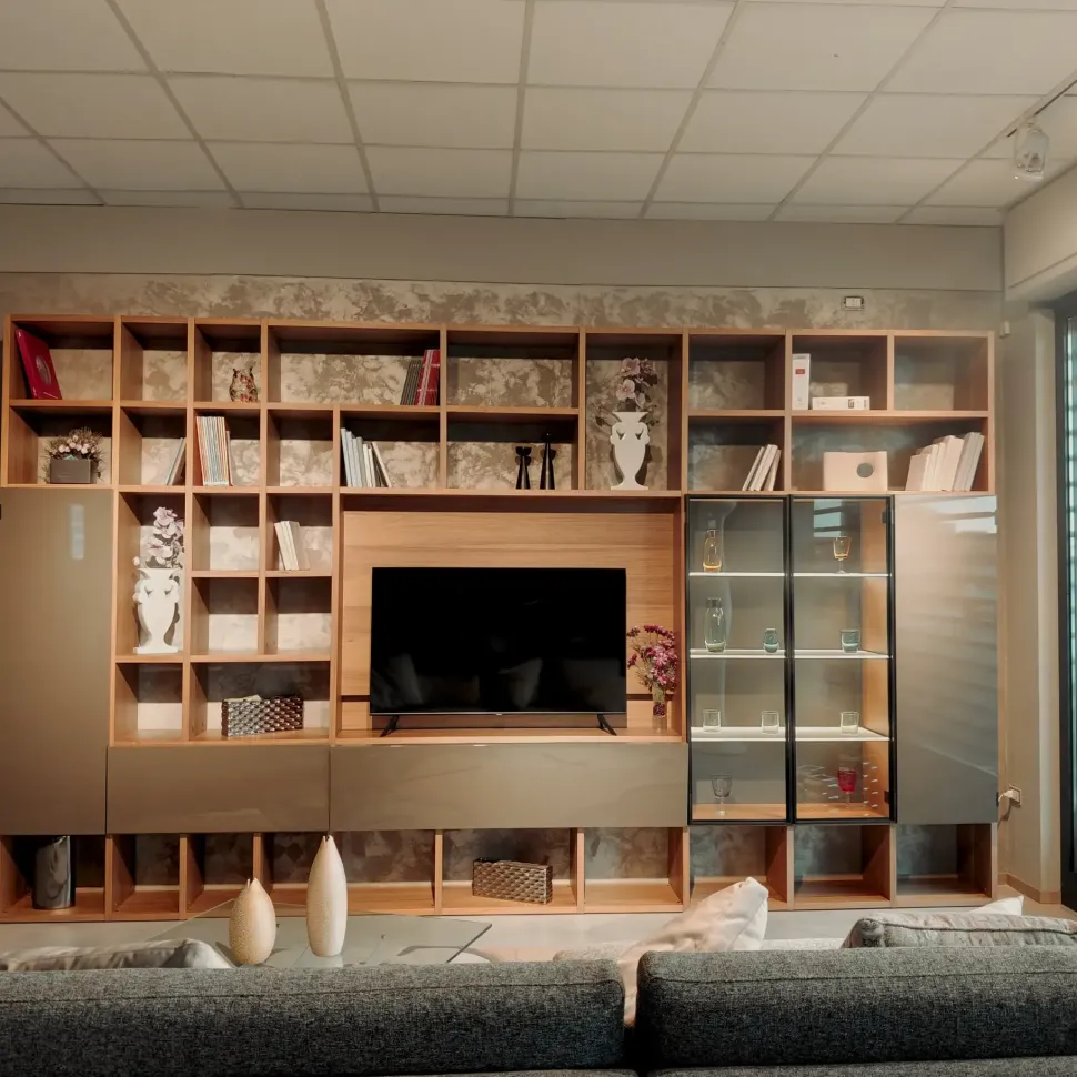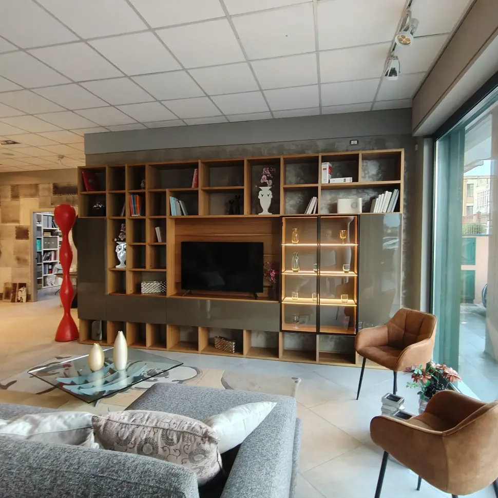 Parete attrezzata di grande qualità in offerta outlet nel nostro outlet, trasporto incluso entro 100 Km per quest’offerta.