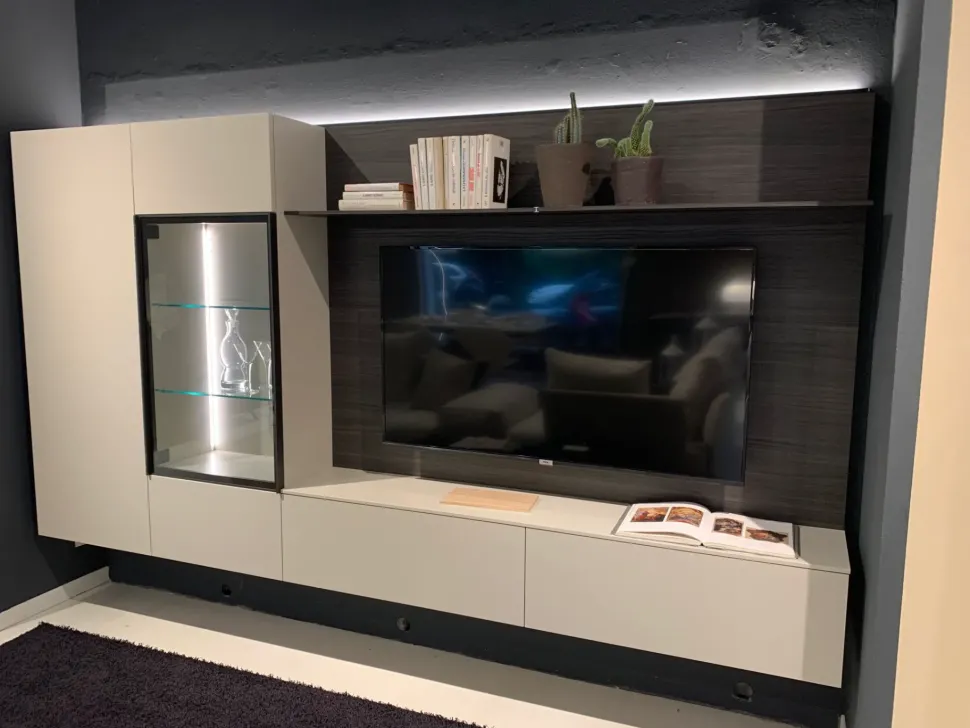 Uno stile unico e materiali di qualità contraddistinguono tutte le pareti attrezzate del rinomato brand: il modello nell’immagine, ad esempio, è in laccato opaco.