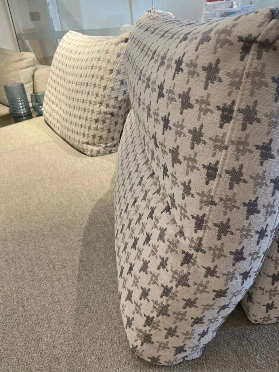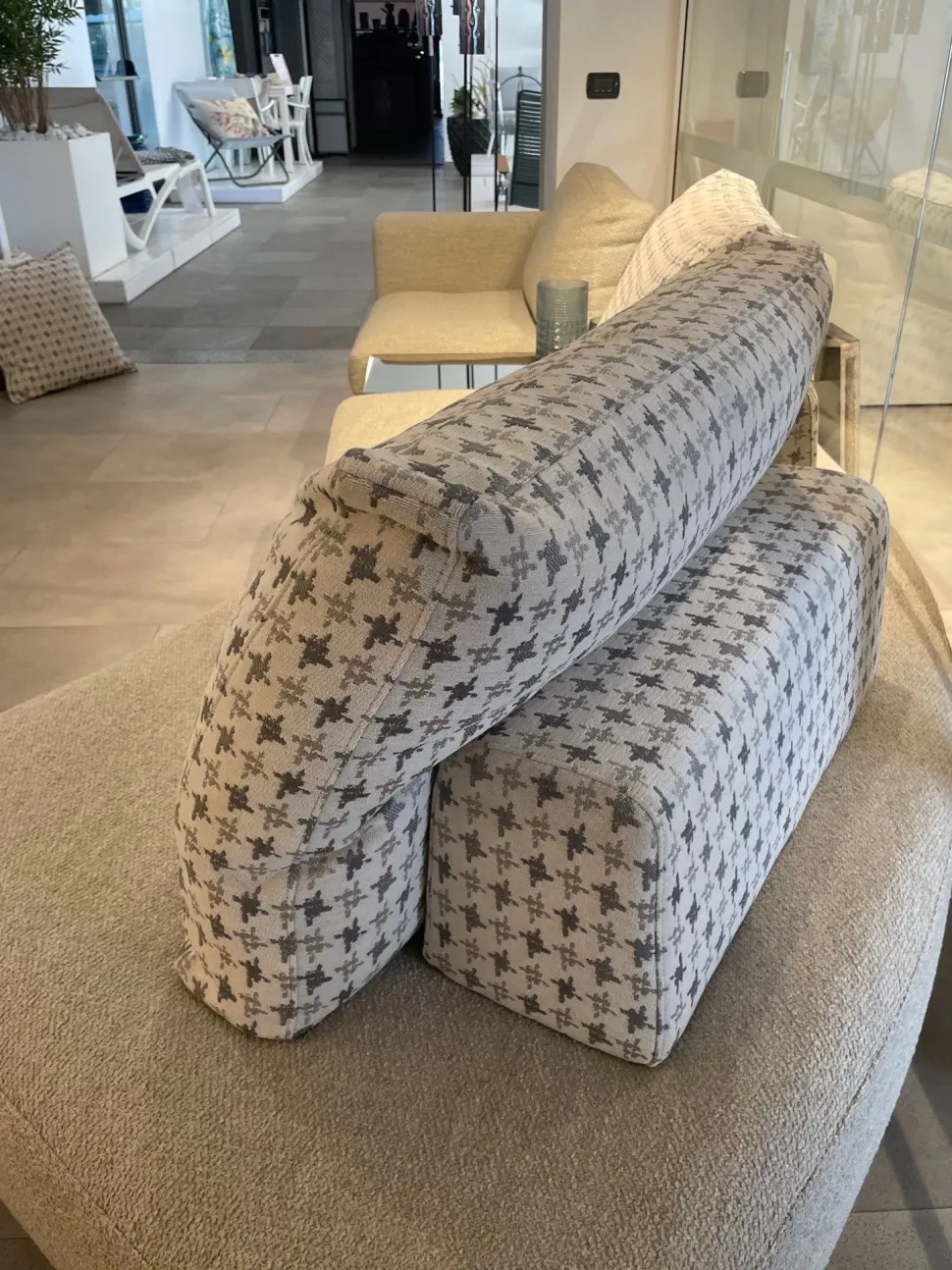 - Questo modello è rivestito totalmente in Tessuto sfoderabile e l’imbottitura è in misto piuma, materiale adeguato per la conservazione negli anni delle sue doti pratiche ed estetiche.