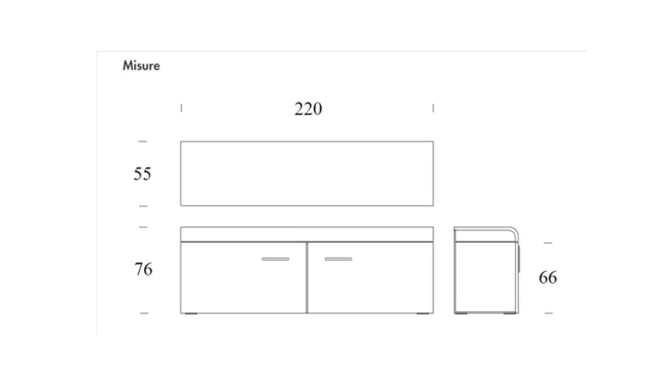 Dimensioni L.220 P.55 H.76 cm
