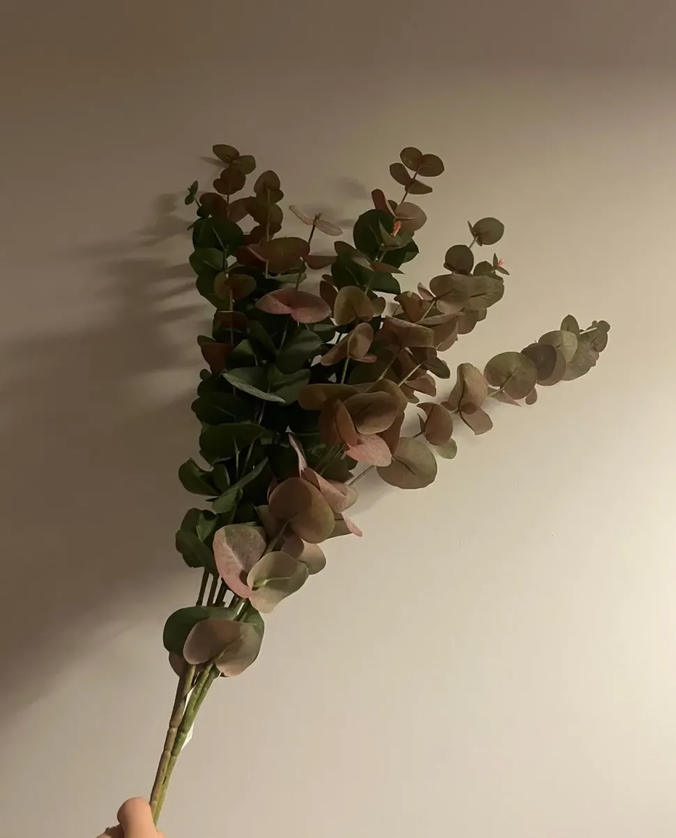 rami di eucalipto olis di colorazione verde con sfumature sul rosa