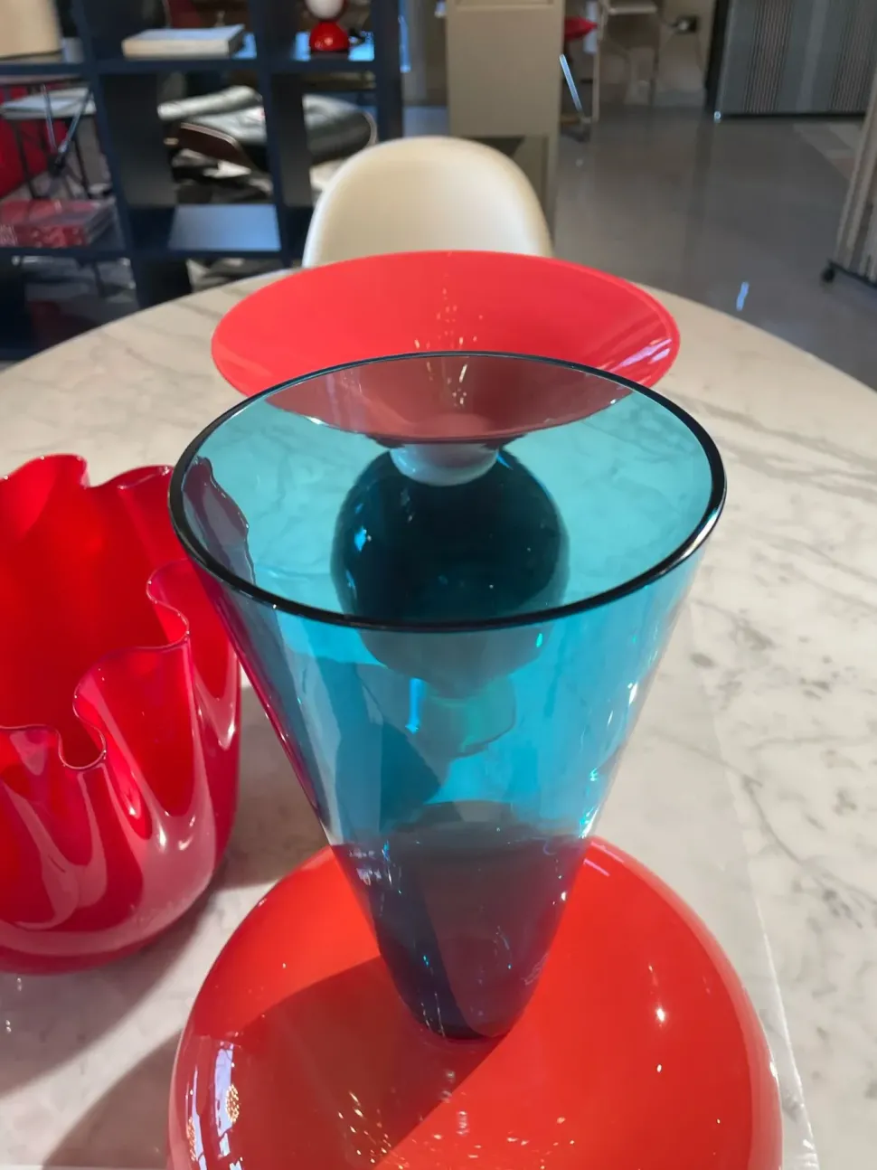 Vaso Venini modello Puzzle, colore ACQUAMARE, CORALLO.