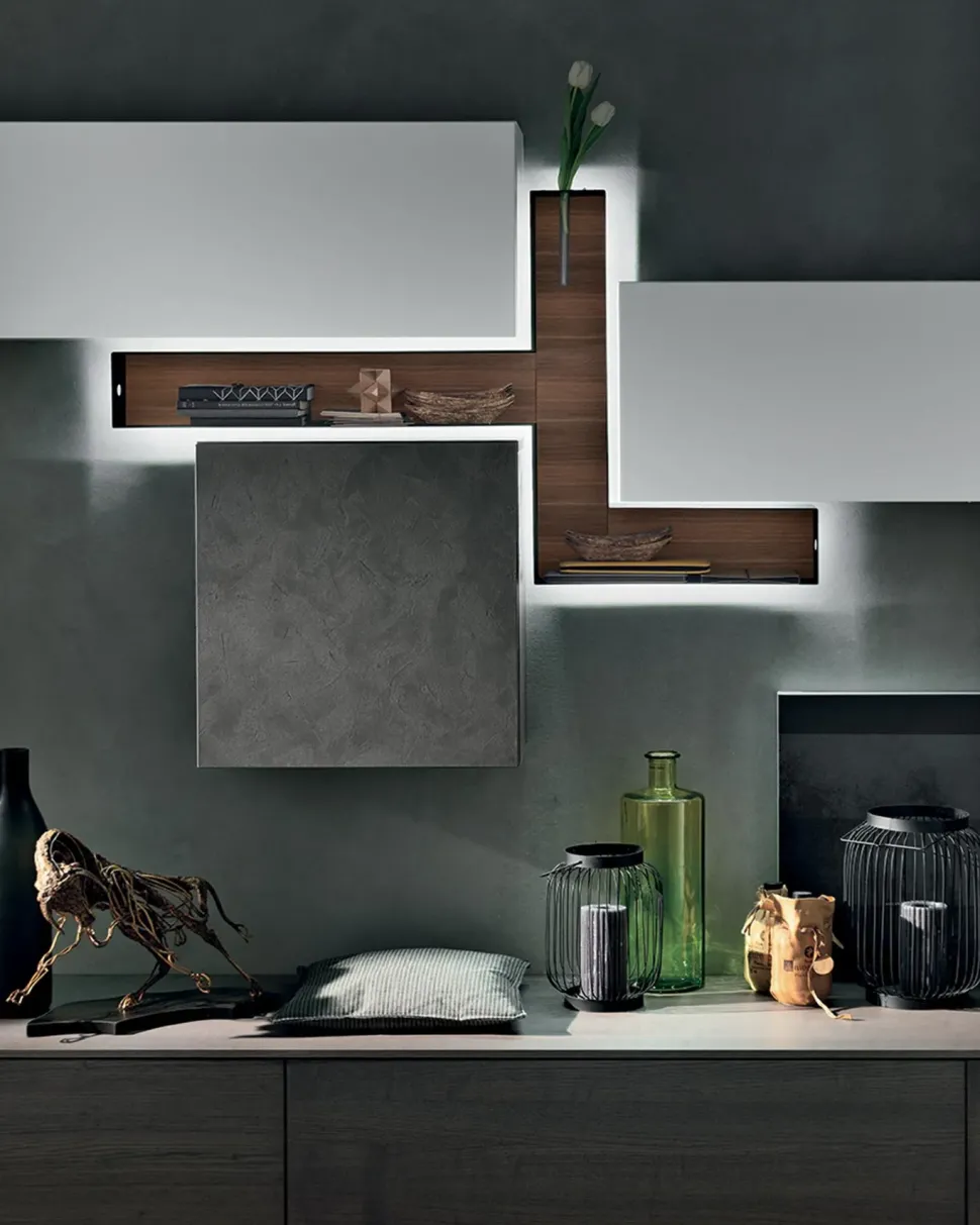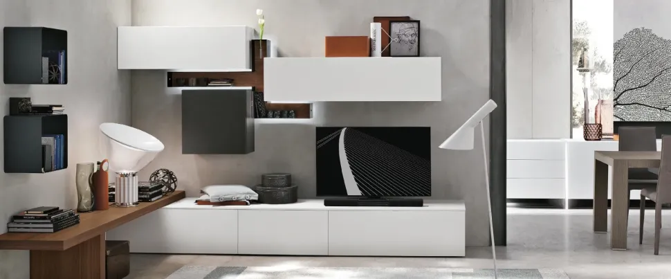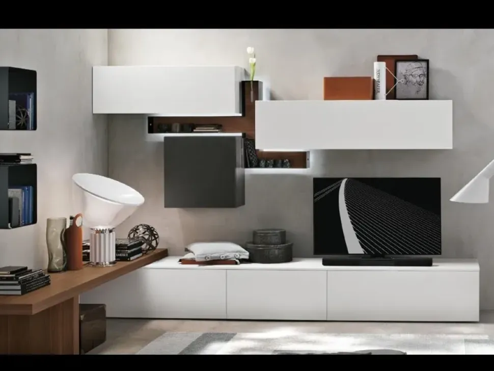 La disposizione dell’arredamento, la gamma di colori e le finiture definiranno l’atmosfera del tuo soggiorno nel complesso: per non sbagliare, dovrai tenere in conto che in questo locale è consigliabile ricreare un’atmosfera di calore e accoglienza. Ospiterai familiari e amici nonché passerai serate di relax e di svago nel tuo soggiorno: quindi è consigliabile rendere gli ambienti agibili e confortevoli con un modello di grande design, proprio come questa soluzione con Parete attrezzata A070 con uno sconto del 25%.