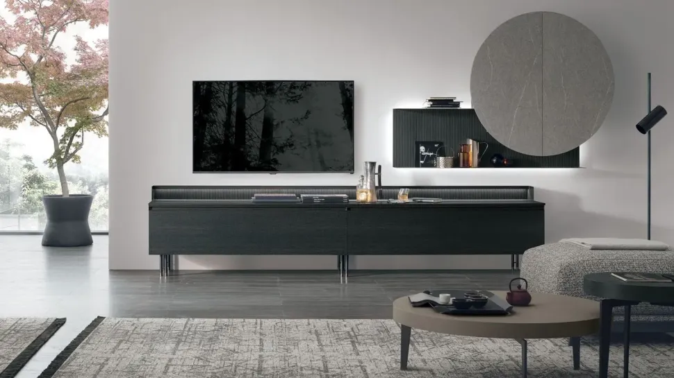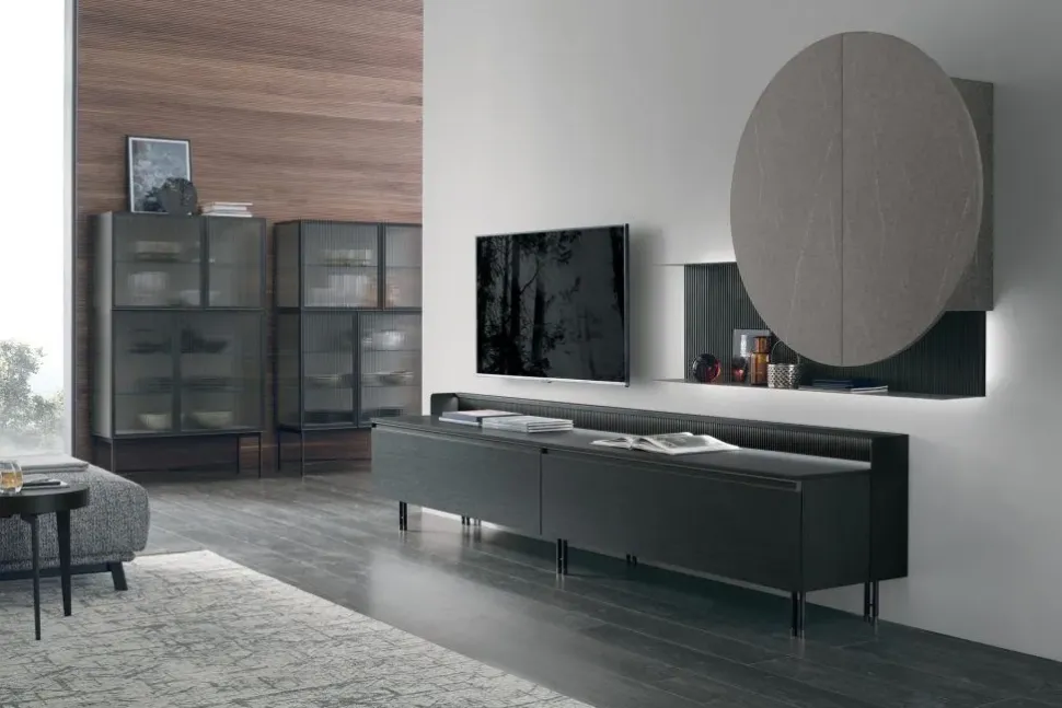 Il soggiorno si compone di vari mobili e oggetti accessori capaci di ultimare lo spazio valorizzando ogni angolo ; tra questi c’è sempre una parete attrezzata come il modello At101 di Tomasella presente in foto, ideale per dare vita a un soggiorno pratico e operativo.