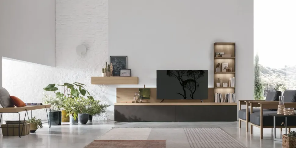 La zona giorno si compone di molteplici mobili ed elementi accessori capaci di ultimare lo spazio usufruendo al meglio di ogni angolo; tra questi c’è sempre una parete attrezzata come il modello At117 di Tomasella mostrato in foto, pensata per dare vita a un soggiorno dinamico e operativo.