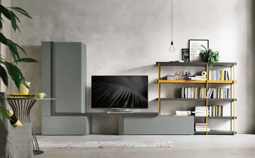 Questa composizione per il living si dimostrerà la scelta ideale se desideri una parete attrezzata push–pull dalle linee decise.