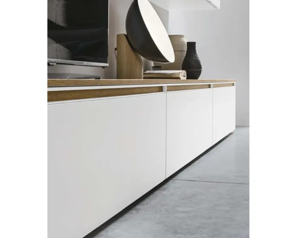 - Questa composizione per il living si rivelerà l’acquisto perfetto se desideri una parete attrezzata senza maniglia dalle linee decise.