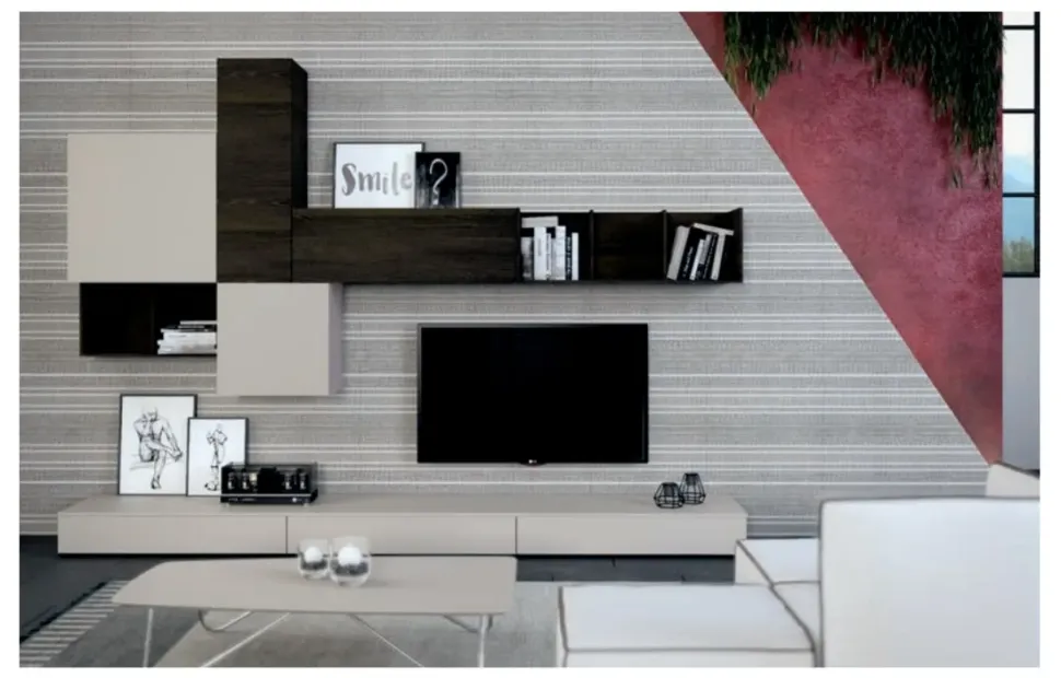 Per il tuo soggiorno abbiamo pensato ad una collezione di mobili e complementi in laminato materico, come la parete attrezzata Atlante skt27 scontata, ideale per abbinare doti di funzionalità e stile nel tuo soggiorno. Se vuoi completare la zona giorno con una parete attrezzta push–pull, il modello Atlante skt27 presente in foto fa per te. I mobili e complementi per la zona giorno offrono l’opportunità di personalizzare lo spazio dando vita a peculiari atmosfere: se desideri un soggiorno design, la parete attrezzata nell’immagine è l’ideale.