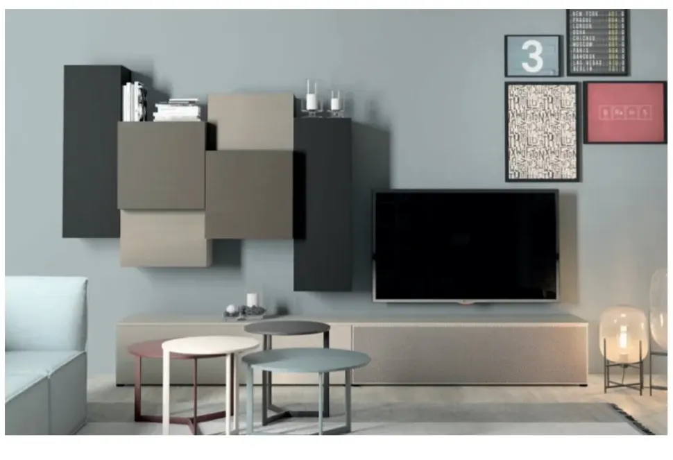 Per il tuo soggiorno abbiamo pensato ad una linea di mobili e oggetti accessori in laminato materico, come la parete attrezzata Atlante skt29 in offerta, ideale per unire doti di praticità e design nel tuo soggiorno.