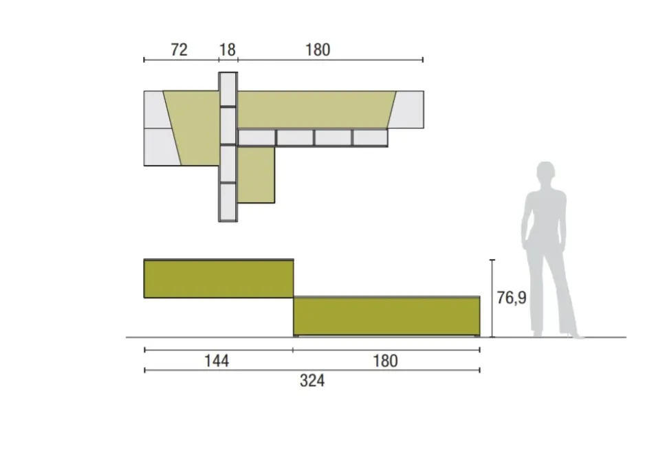 Una parete attrezzata il cui carattere contemporaneo si traduce in living sempre attuali, che si adattano a tutte le esigenze e non passano mai di moda. Una linea diagonale suddivide in due parti i pensili sospesi, tra moduli chiusi ed elementi a giorno. Si tratta di 2 elementi con anta a ribalta Diagonal da 180x40x36 cm e da 72x40x72 cm. Un terzo pensile, semplice, con anta misura invece 36×30,4×54 cm. In contrapposizione i 2 contenitori, uno sospeso con ribalta legno da 144x40x36 cm e uno a terra con ribalta legno da 180x40x36 cm. A completare il tutto le 2 librerie Raster, una verticale da 18×30,5×144 e una orizzontale da 144×30,5×18 cm. Il design innovativo non mette in secondo piano gli accostamenti cromatici: dal madreperla al cemento scuro, dal nodato chiaro all’antracite, ogni abbinamento è segno di moderazione e sobrietà, per ottenere il massimo dell eleganza. La parete attrezzata Atlante SKT30, con un preventivo a parte, può essere adattata alle vostre esigenze: grazie alla modularità della composizione è infatti possibile richiedere una versione personalizzata per elementi e finiture. I prezzi si intendono IVA inclusa. Trasporto e montaggio sono da calcolare. Per qualsiasi altra informazione, compilate il form sottostante.