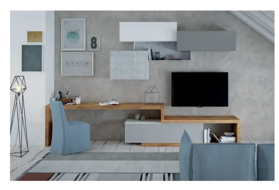 Il soggiorno si compone di differenti mobili e complementi capaci di completare lo spazio usufruendo al meglio di ogni angolo; tra questi deve esserci una parete attrezzata come il modello Atlante skt38 di Tomasella visibile in foto, pensata per dare vita a un soggiorno pratico e dinamico.