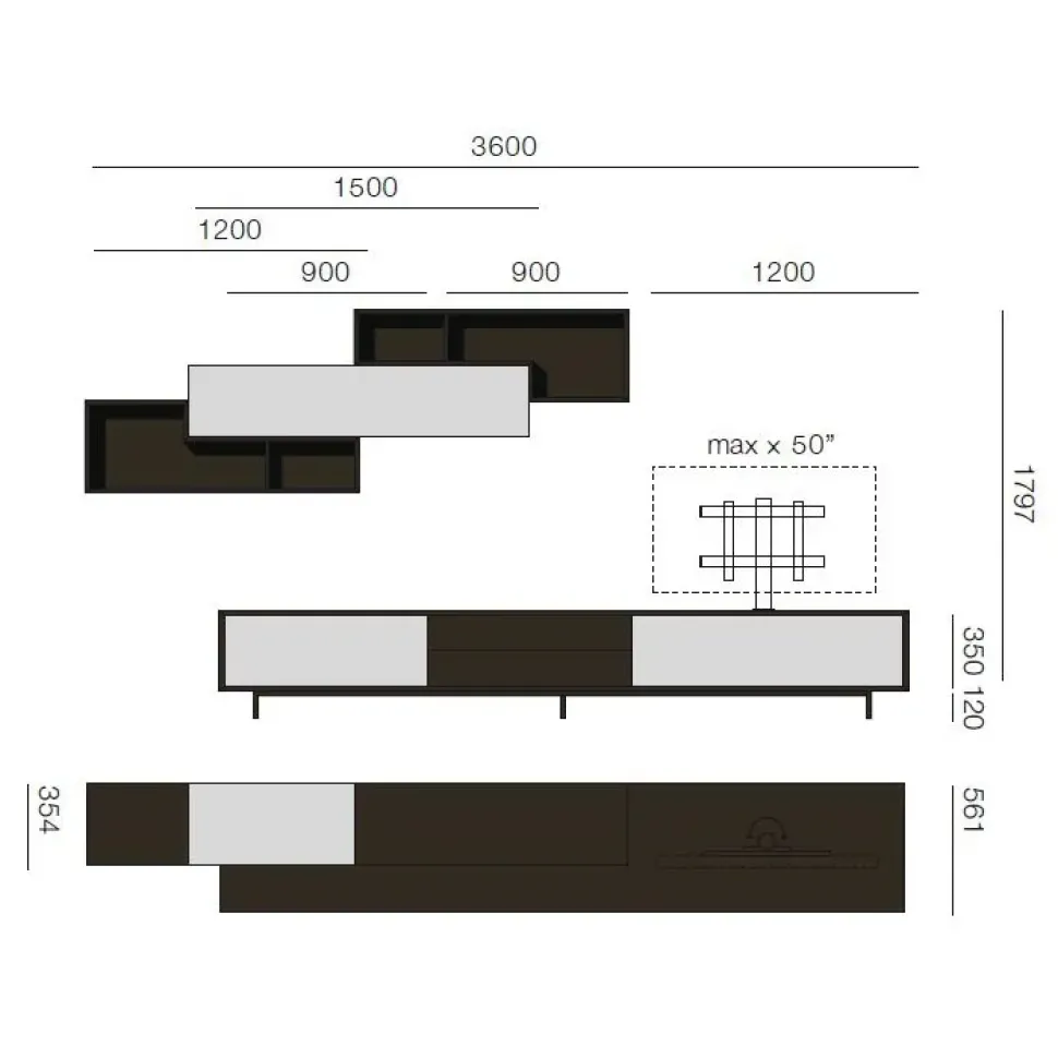- La plurifunzionale e capiente parete attrezzata nell’immagine è un mobile sospeso che è appartenente alla nostra linea di mobili ed elementi accessori di Sangiacomo, specialista del settore.