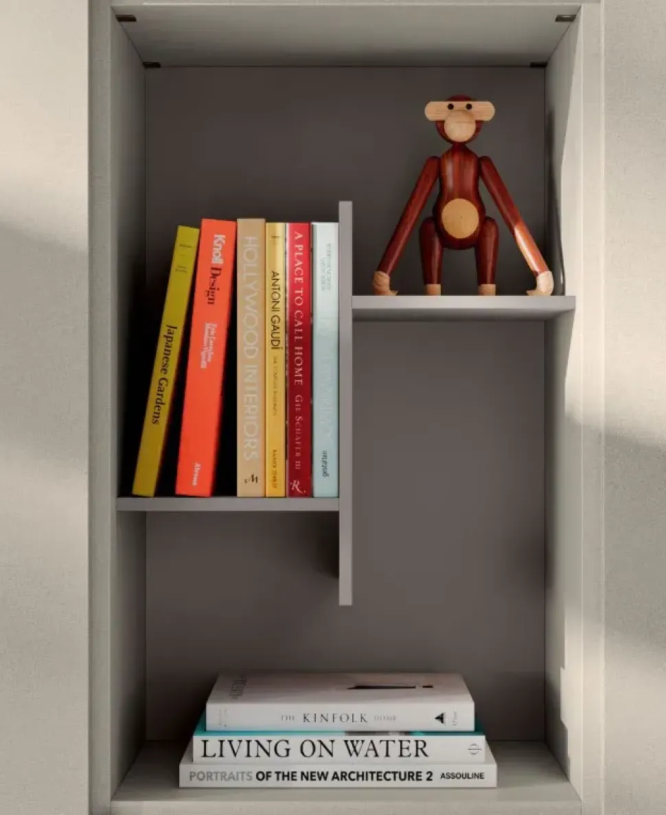 La finitura opaca color canapa si integra con discrezione in qualsiasi contesto abitativo, creando uno sfondo sofisticato che valorizza sia spazi ampi che ambienti più raccolti. Il design modulare consente di organizzare ogni elemento con logica e stile, rendendo questa parete la scelta ideale per chi desidera un soggiorno ordinato, luminoso e attuale.