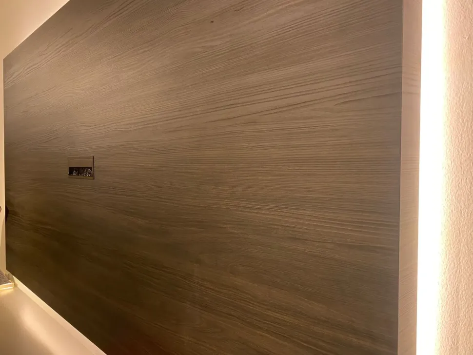 PANNELLO TV RETRO ILLUMINATO CON ELEMENTO PASSACAVI FINITURA CARBONE – L 210 x H 110 x P 8