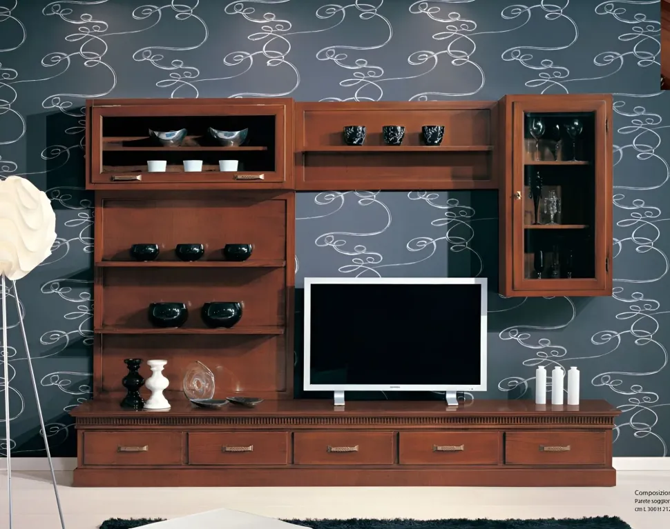 - I mobili e complementi per il soggiorno consentono di personalizzare lo spazio creando particolari atmosfere: se vuoi un soggiorno classici, la parete attrezzata nell’immagine è l’ideale.