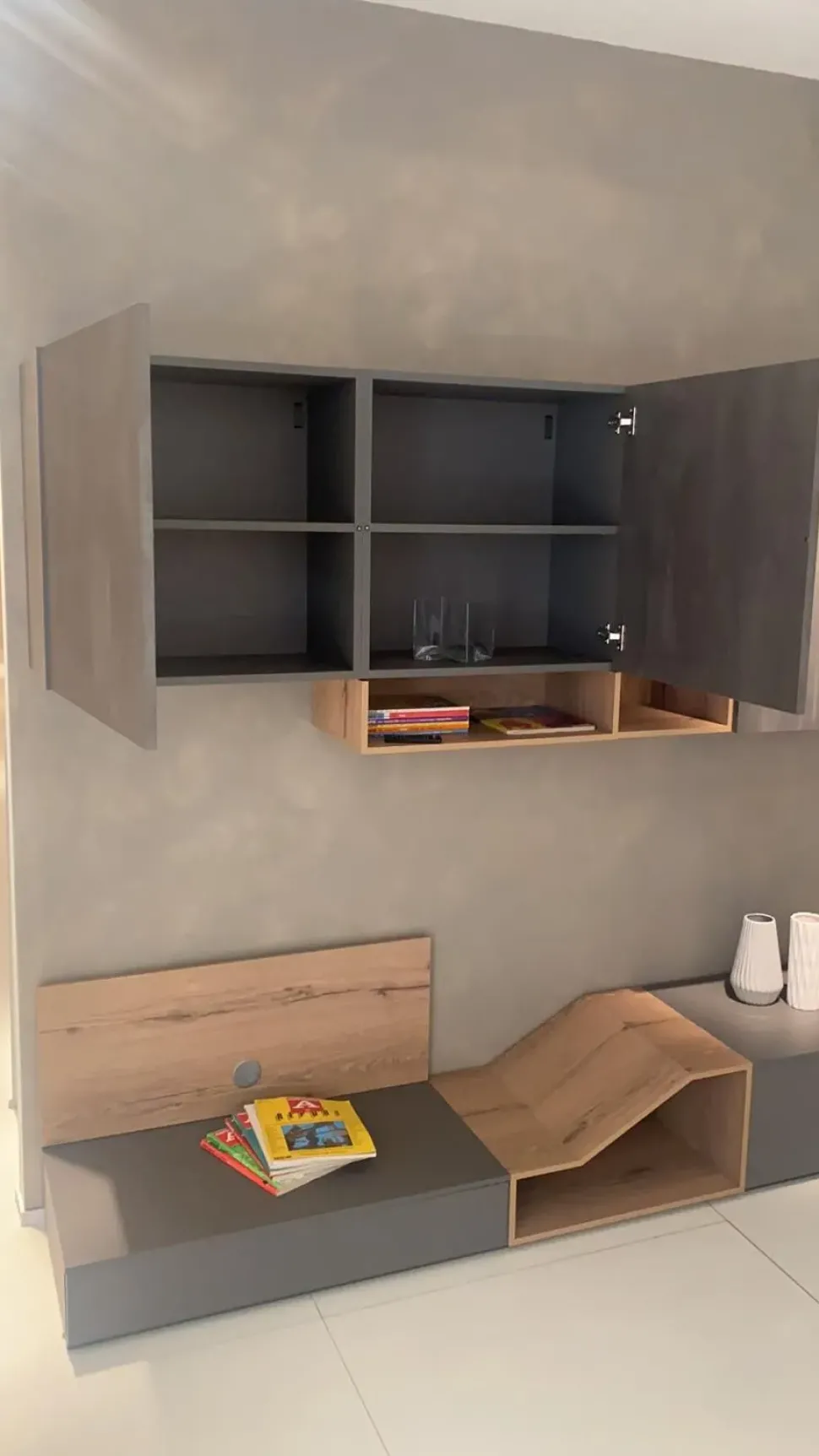 - Questa composizione per il living si dimostrerà la scelta ideale se vuoi una parete attrezzata push–pull dalle forme decise.