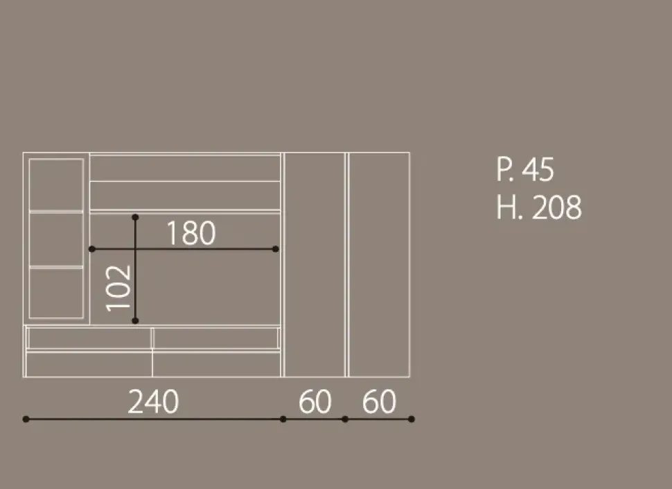 - La composizione per la zona giorno qui visibile è realizzata in materiali di prima scelta e resistenti negli anni: questo modello, in particolare, è in laminato materico.
