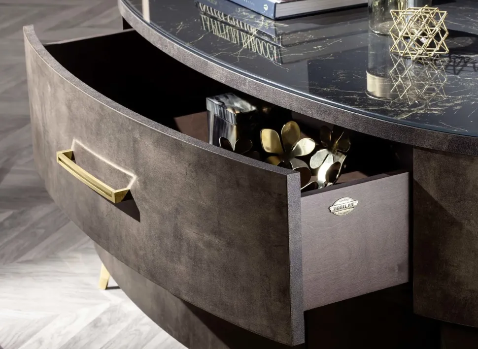 - Forme decise e uno stile unico contraddistinguono questa composizione per la zona giorno, rendendola ideale per impreziosire un luogo in stile design.