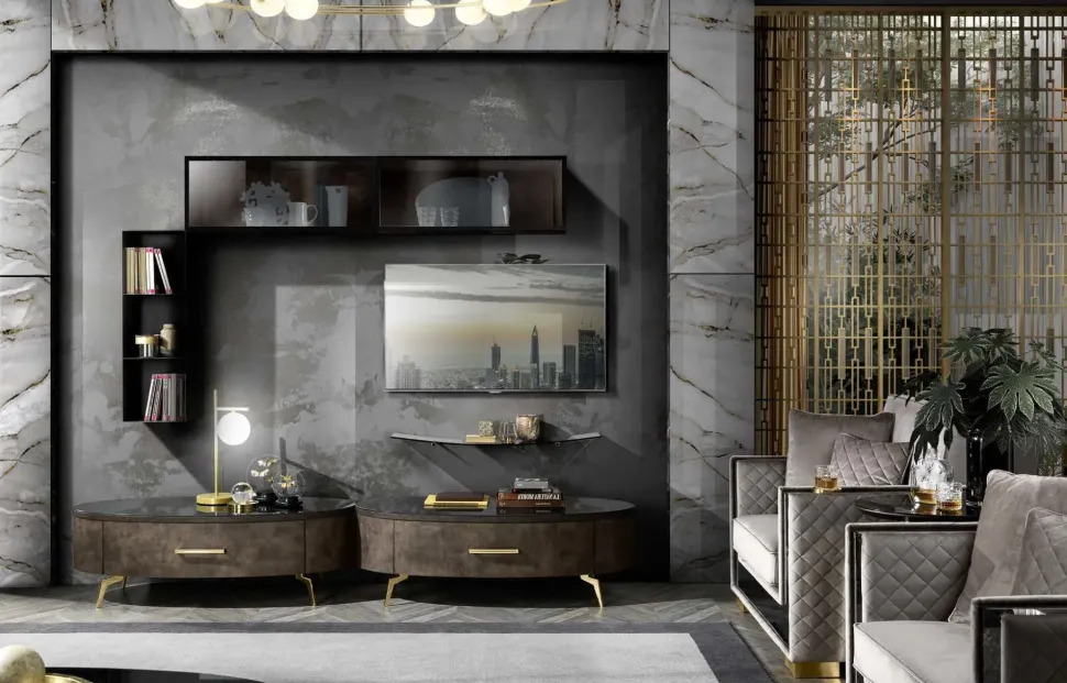 - Linee decise e uno stile unico caratterizzano questa composizione per il soggiorno, rendendola ideale per impreziosire un luogo in stile design.