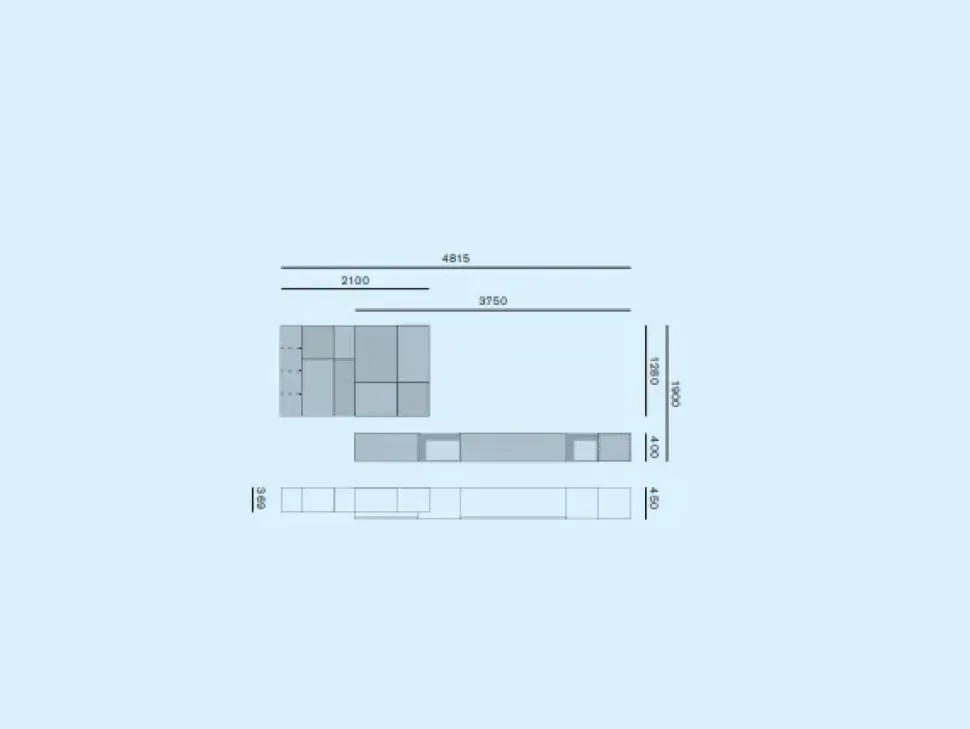 - La parete attrezzata L5c07 ha una larghezza che va da 401 cm in su ed è dunque ideale per locali di diverse misure e conformazioni.