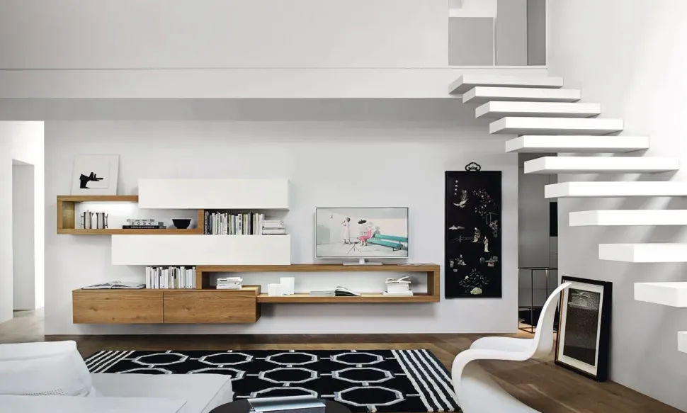 - Completa l’arredamento del tuo living con un mobile sospeso di gran classe: la composizione in foto saprà completare lo spazio usufruendo al meglio di ogni angolo.