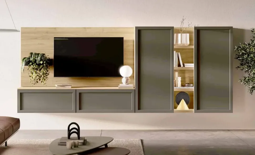 parete attrezzata con anta telaio perfetta sia per ambiente classico che moderno.