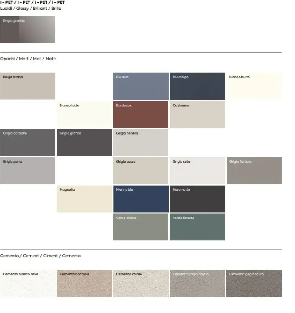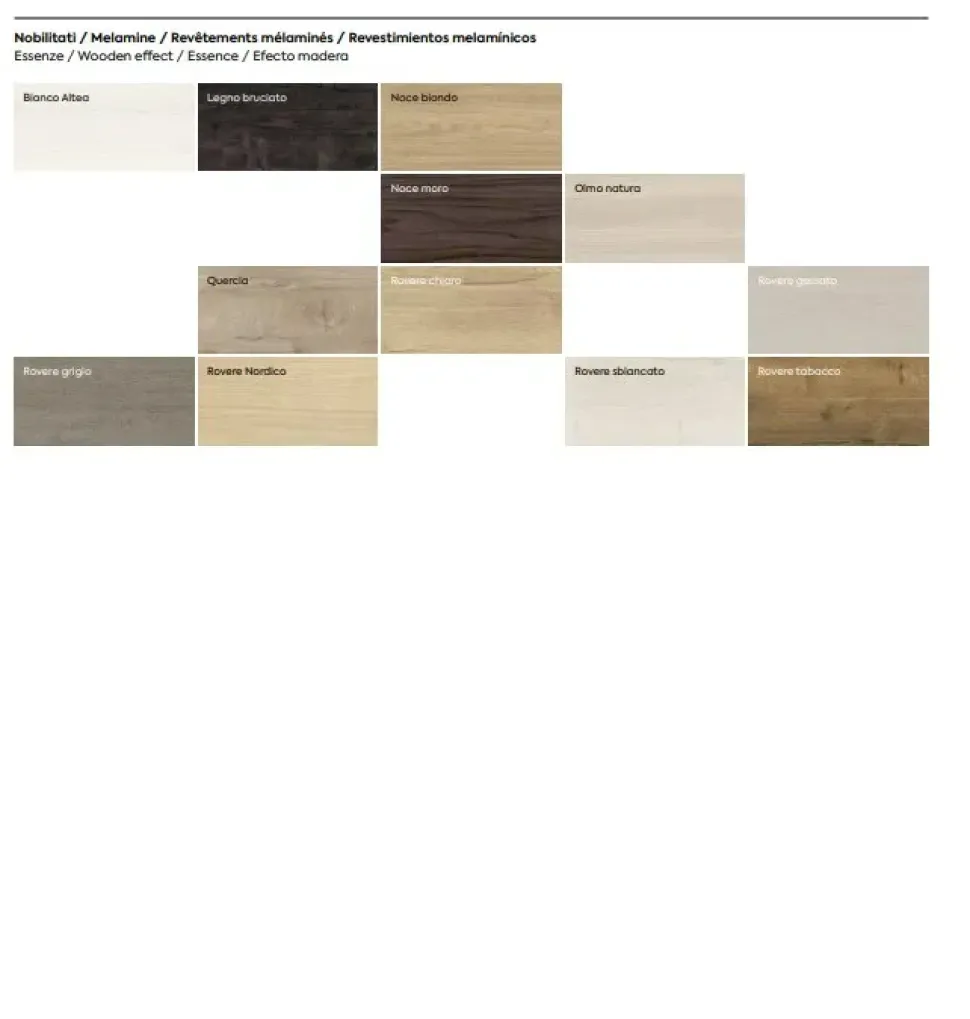 Un design unico e materiali durevoli contraddistinguono tutte le pareti attrezzate del rinomato marchio: il modello nella fotografia, ad esempio, è in laminato materico.