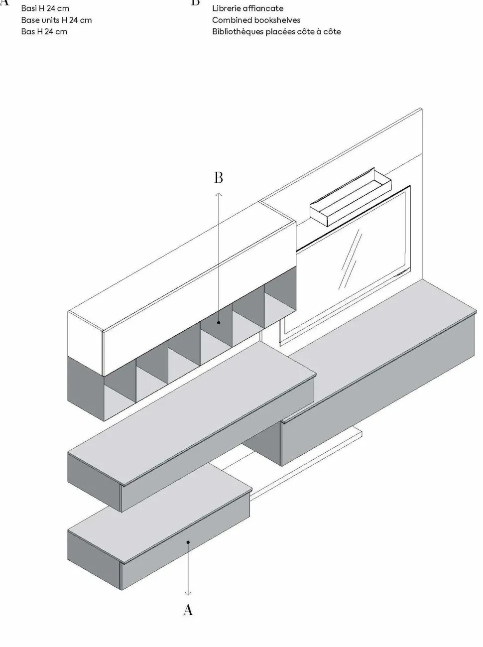 - Forme decise e uno stile unico contraddistinguono questa composizione per il living, rendendola ideale per impreziosire un luogo in stile moderni.