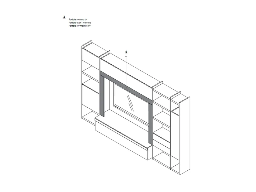 La composizione ha come elemento protagonista il portale, disponibile in tutte le essenze. Da elemento strutturale, riprende il suo spazio negli ambienti contemporanei: funzionale e decorativo oggi come non mai. Il vano porta tv si inserisce tra i pensili e le basi per completare la composizione. Un elemento in più che aggiunge funzionalità allo stile.